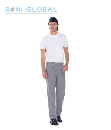 Pantalon de cuisine pied de poule marine et blanc homme en coton 3 poches -...