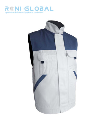 Gilet de travail blanc, sans manche, en coton/polyester 5 poches - GILET SS MANCHE MIKE...