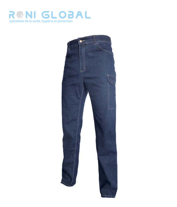 Pantalon de travail jean bleu homme avec protection genoux, en coton/polyester/lycra 6 poches - JEAN'S...