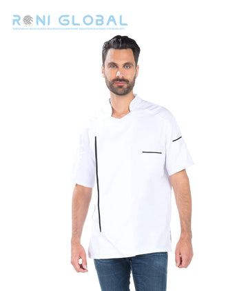 Veste de cuisine homme manches courtes en coton/polyester 3 poches - PAOLO REMI CONFECTION Ref:...