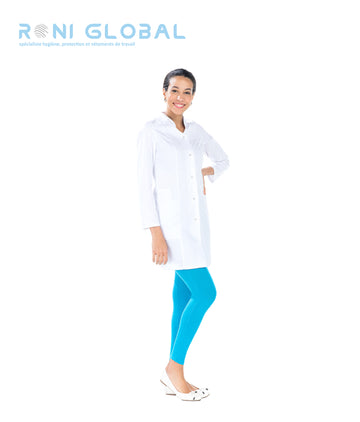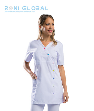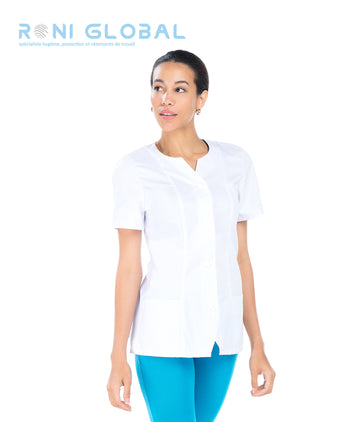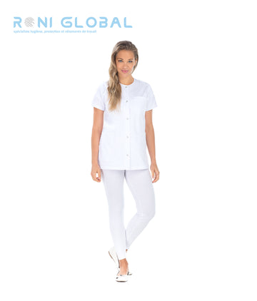 Tunique de travail blanche femme manches courtes 3 poches - DORIS REMI CONFECTION Ref: Remi-2598...