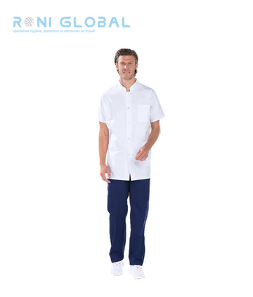 Tunique de travail blanche unisexe manches courtes 3 poches - JONAS REMI CONFECTION Ref: Remi-2970 Tunique...