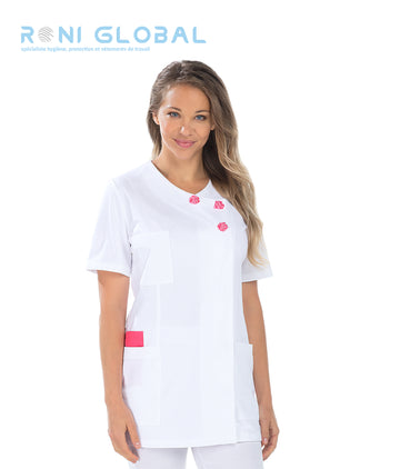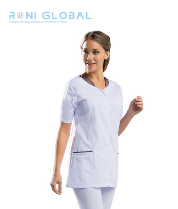Tunique de travail médicale femme manches courtes en coton/polyester 2 poches - EMILIE REMI CONFECTION...