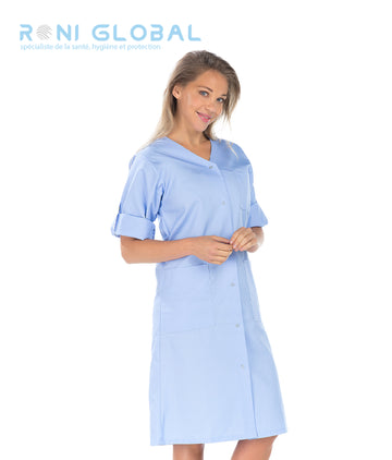 Blouse longue de travail femme manches courtes en polyester/coton 3 poches - CATHY REMI CONFECTION...
