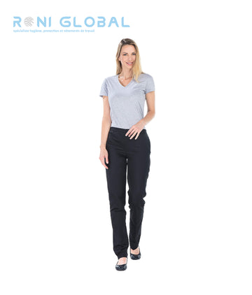 Pantalon de travail femme en polyester avec ceinture élastique dos sans poche - ALIZEE REMI...