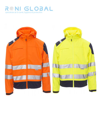 Veste de sécurité haute visibilité, coupe-vent et anti-pluie Softshell en polyester stretch mécanique 5 poches...