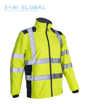 Veste de sécurité haute visibilité Softshell micro polaire en polyester 5 poches CLASS 2 -...