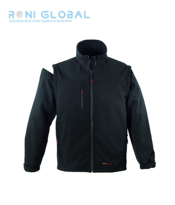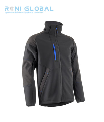Veste de travail noir Softshell, micro polaire, imperméable et respirant, en polyester/élasthanne 5 poches - VESTE...