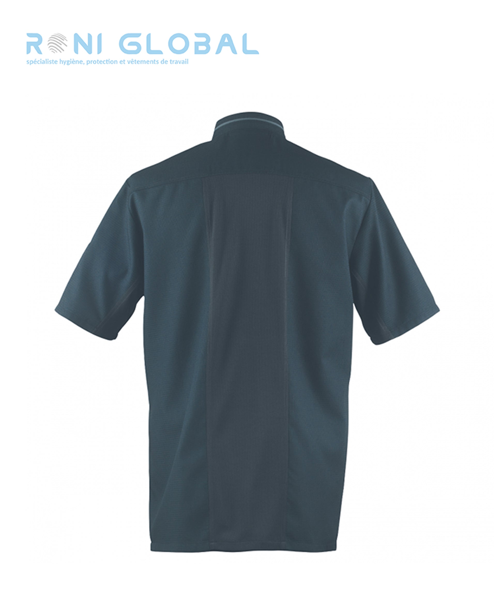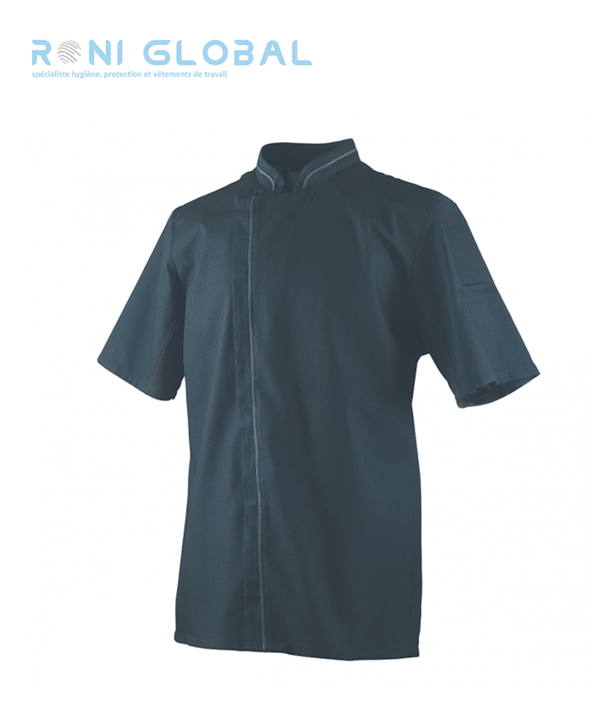 Veste de cuisine noire unisexe manches courtes, coupe slim fit en polyester/coton 1 poche - AGUILA ROBUR