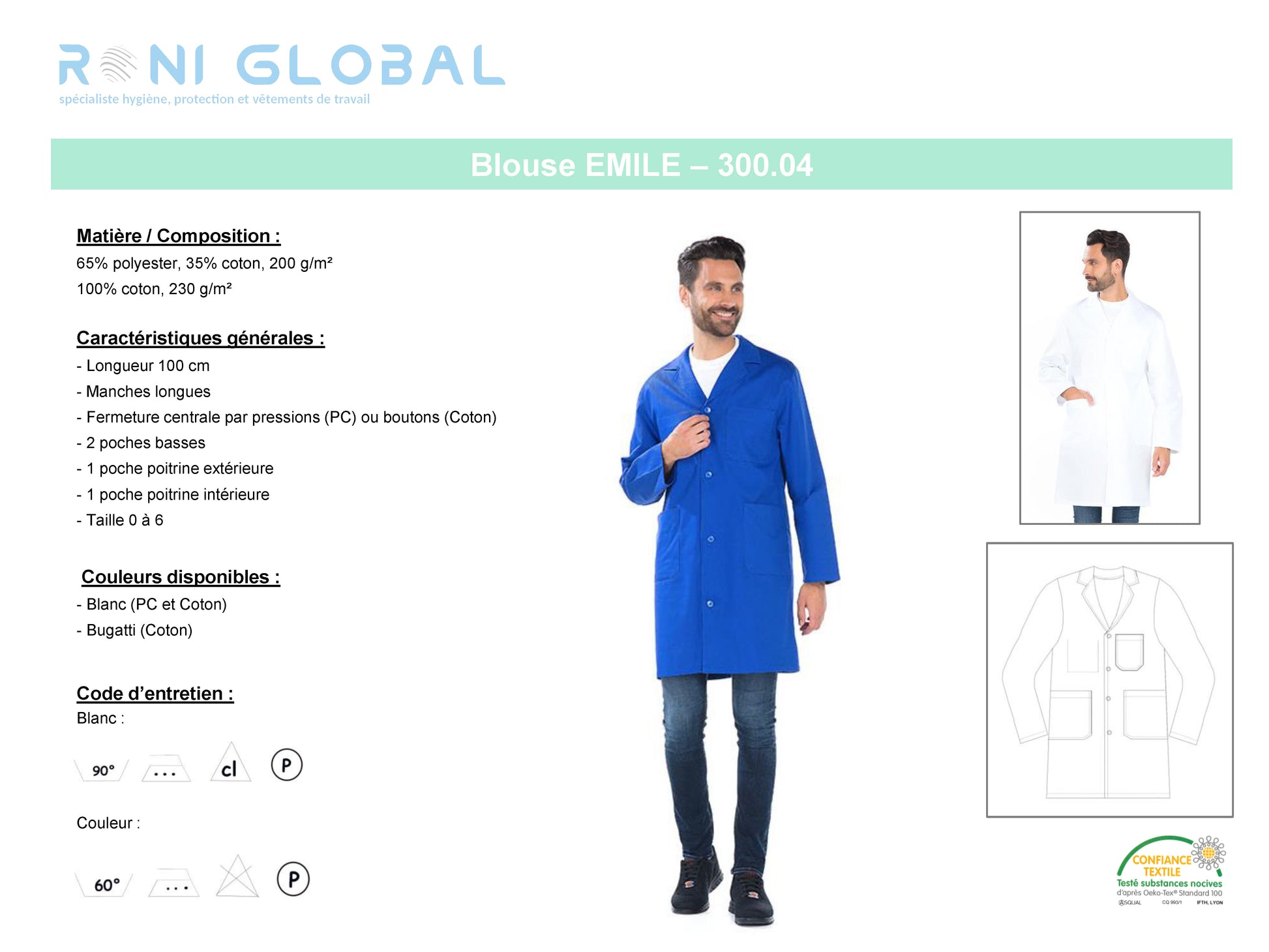Blouse longue de travail homme manches longues 4 poches - EMILE REMI CONFECTION