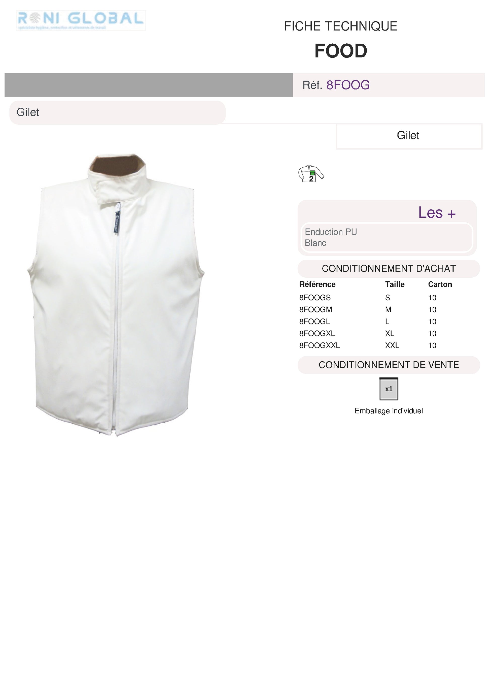 Gilet de travail blanc en polyester enduit polyuréthane 2 poches - FOOD COVERGUARD