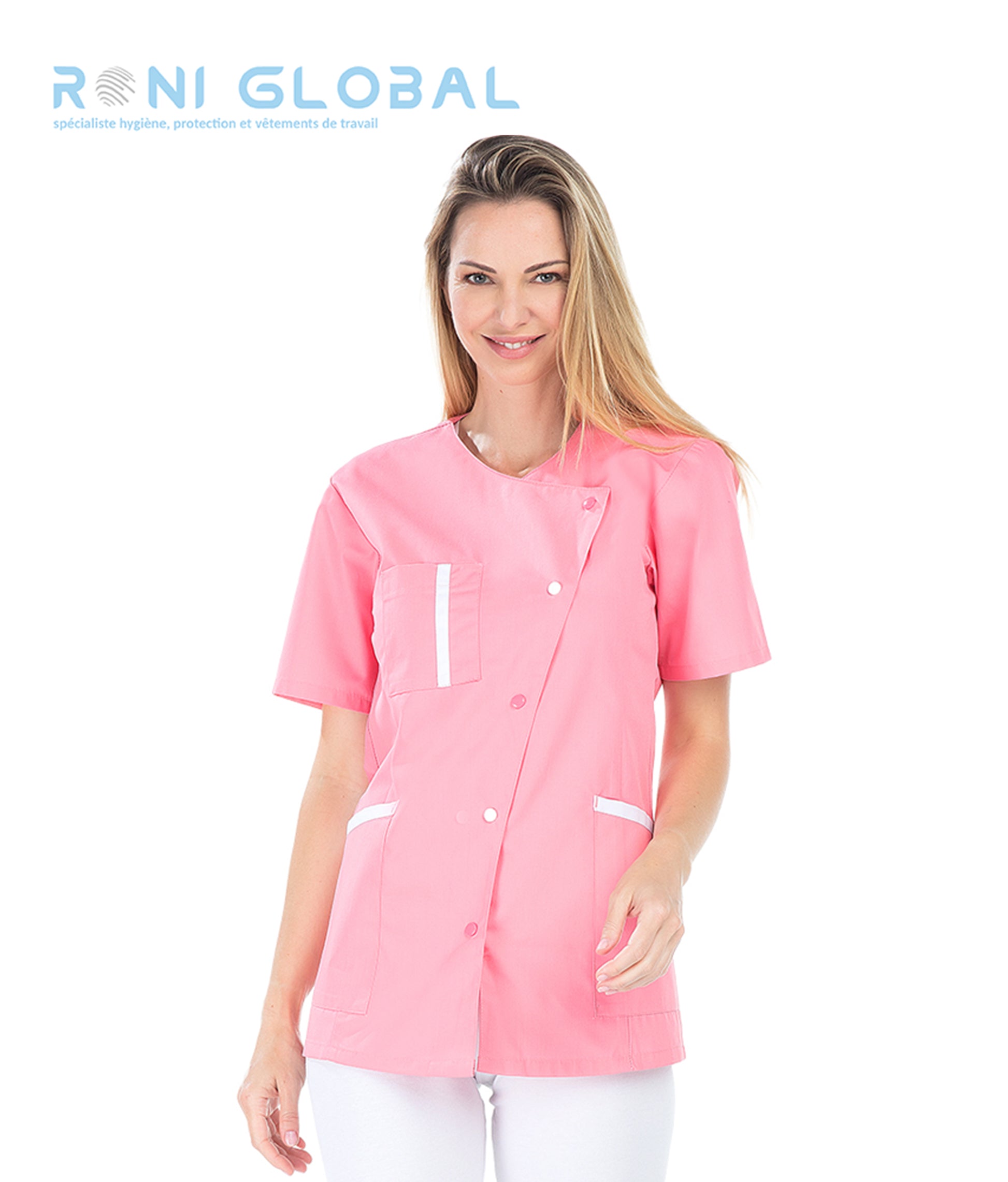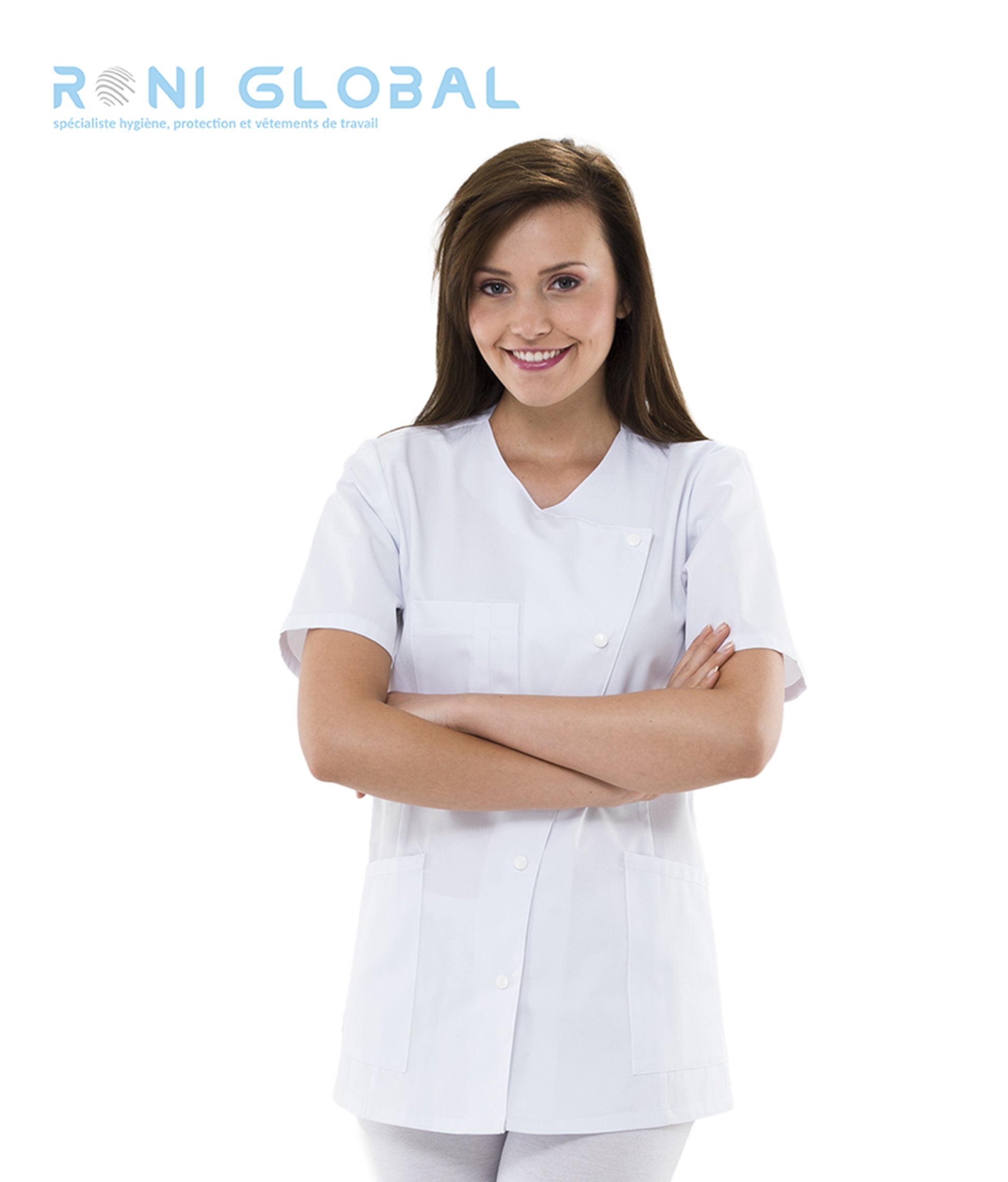 Tunique de travail femme manches courtes en coton et polyester 3 poches - MANON REMI CONFECTION