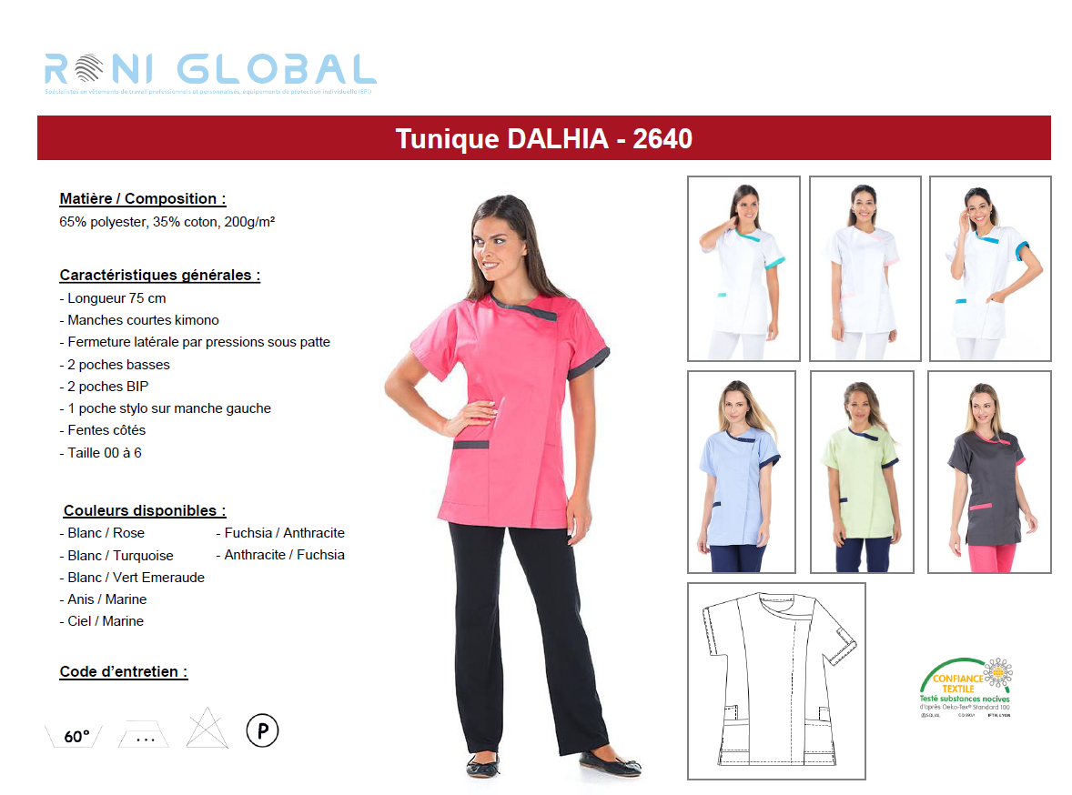 Tunique de travail femme manches courtes en coton/polyester5 poches - DALHIA REMI CONFECTION