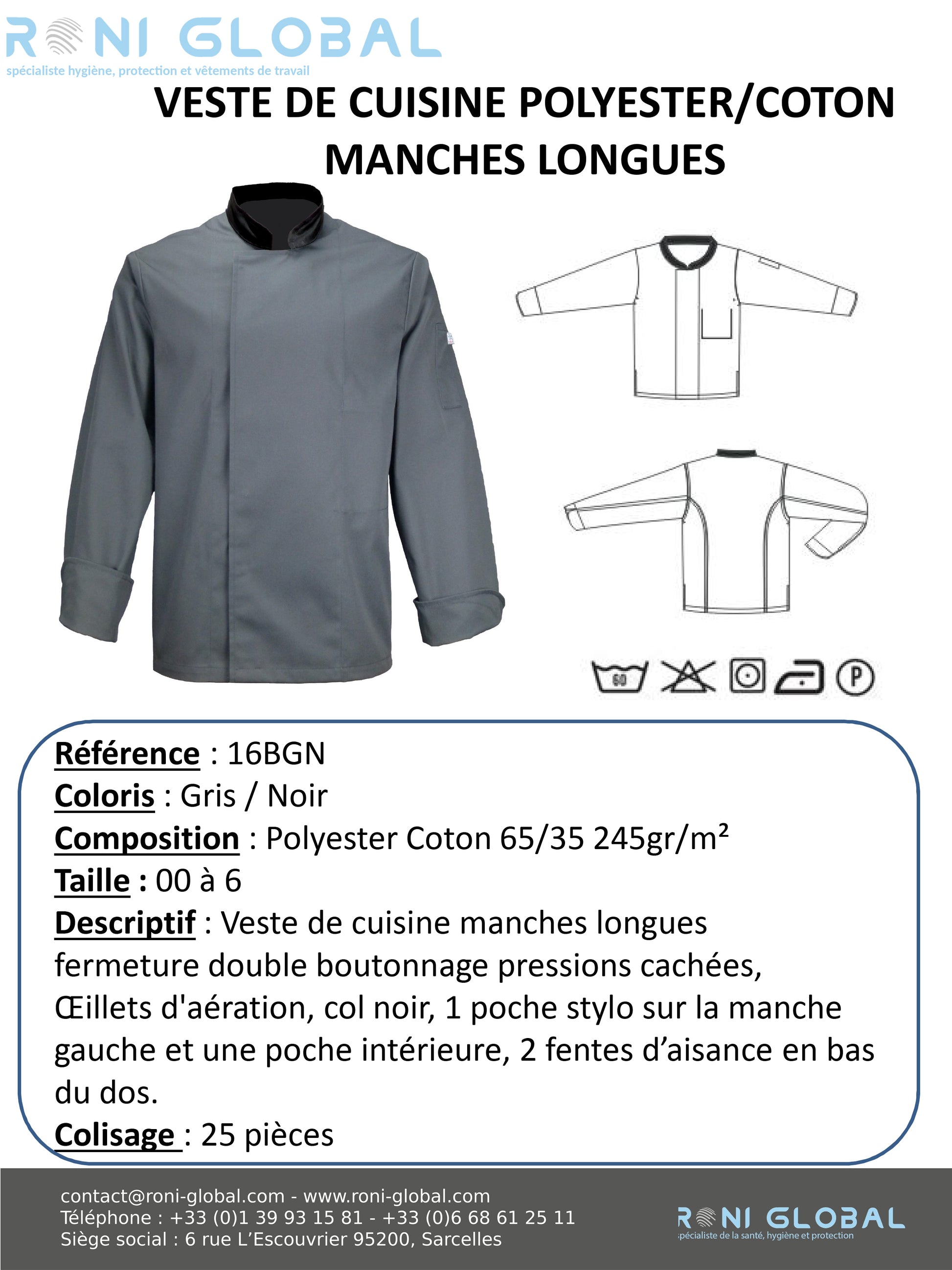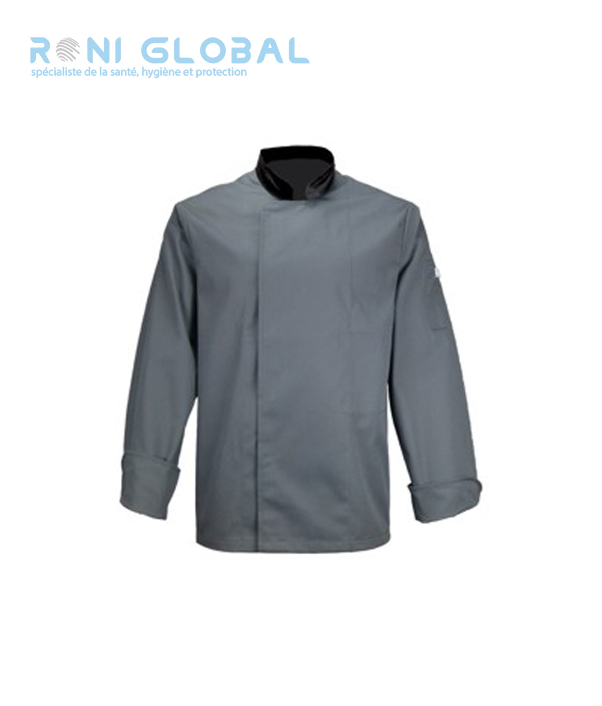 Veste de cuisine grise manches longues, en coton/polyester 2 poches - VESTE CUISINE ML PC GRIS PBV