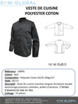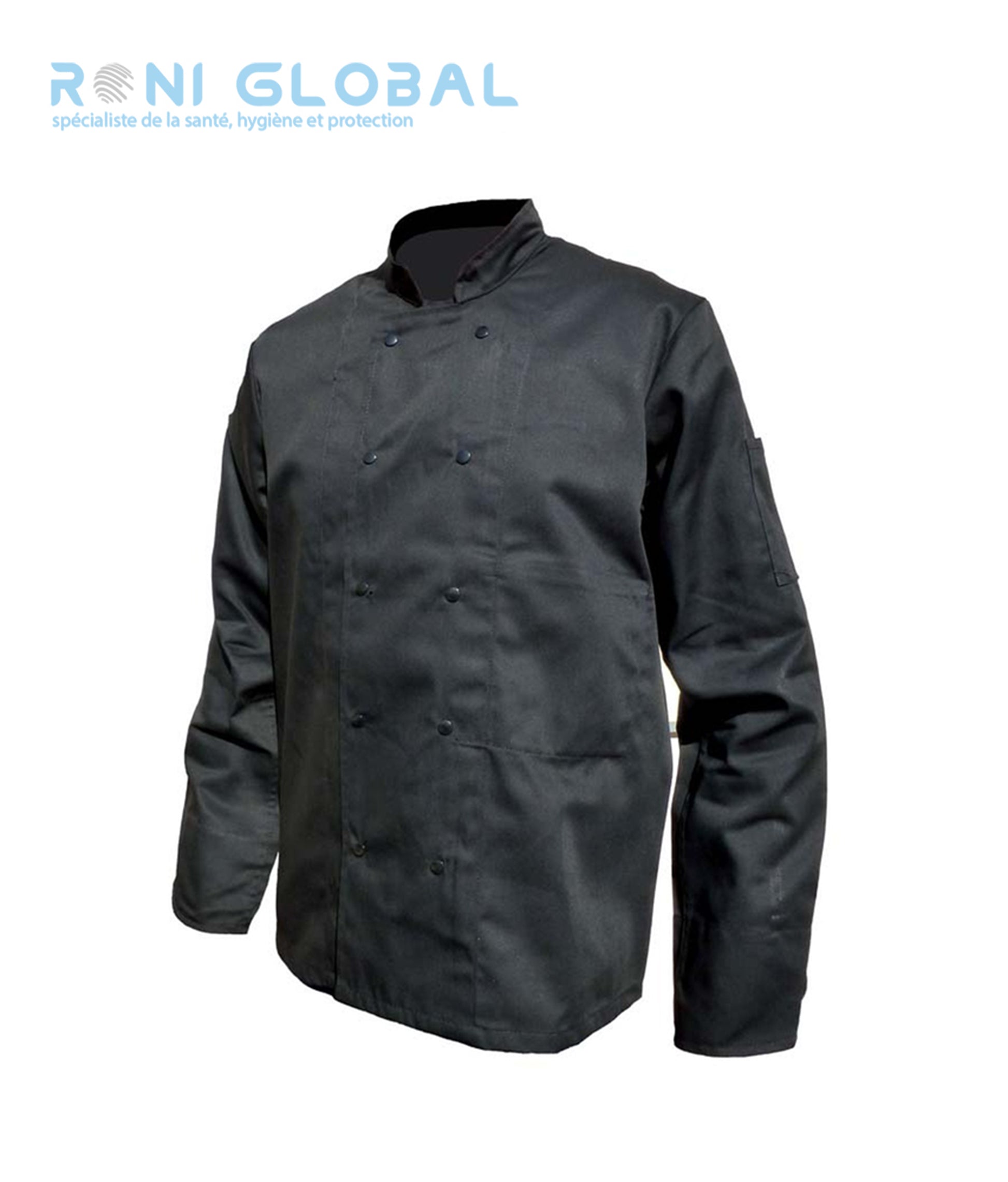 Veste de cuisine noire manches longues, en coton/polyester 2 poches - VESTE CUISINE PC NOIR PRESSIONS PBV